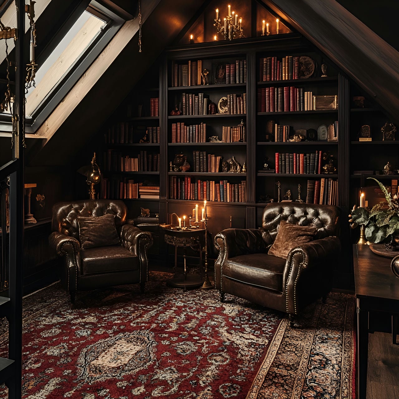 - Azul marino profundo: Los tonos azul marino aportan un aspecto elegante y dramático a los áticos. Son adecuados para espacios más sofisticados, como despachos o bibliotecas, y crean una sensación de profundidad y distinción.