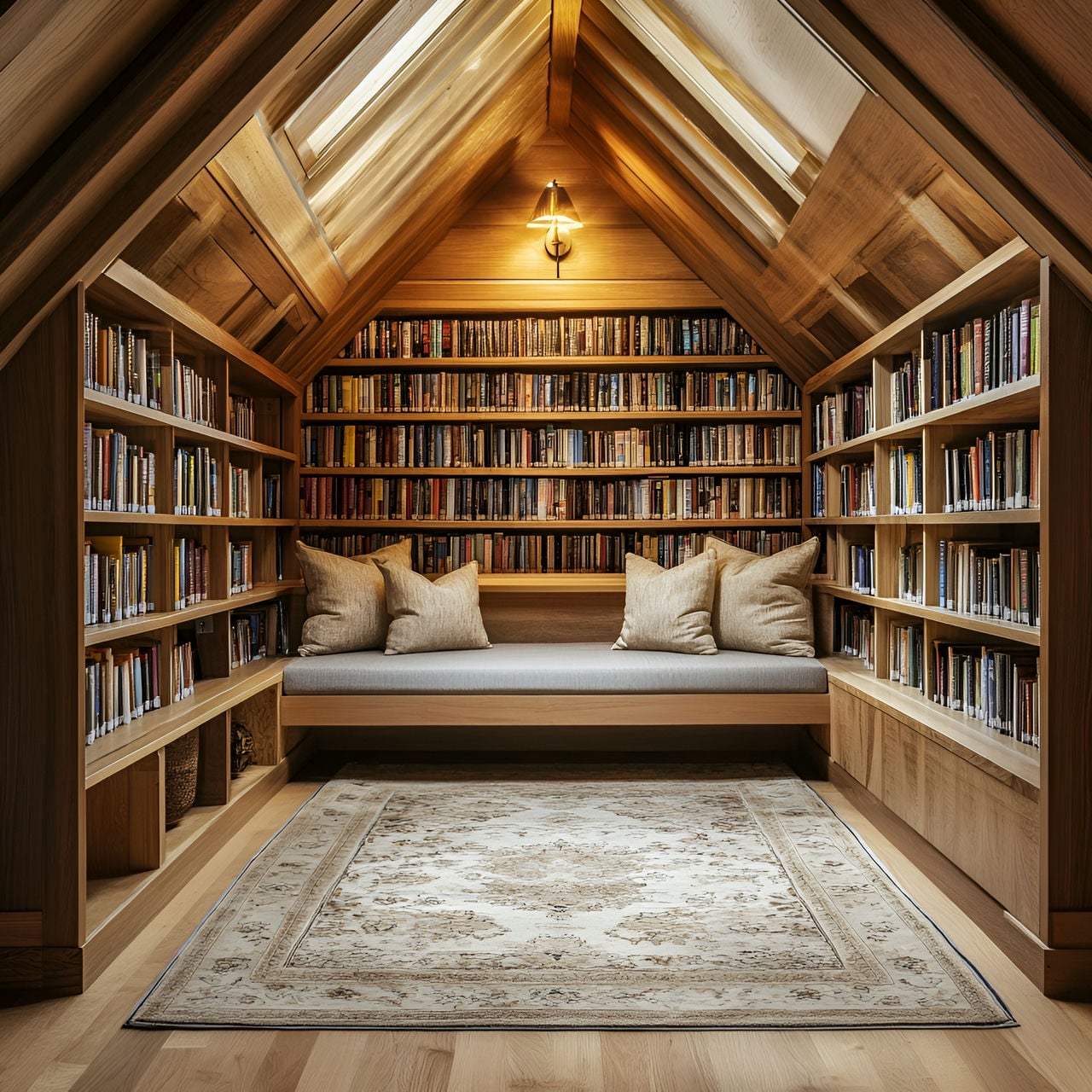 - Estanterías para libros: Las estanterías son una opción muy común en áticos, especialmente si se destinan a rincones de lectura o pequeñas bibliotecas. Generalmente se fabrican en materiales resistentes como la madera para soportar el peso de los libros y se adaptan a los techos inclinados y a las formas singulares propias de estos espacios.