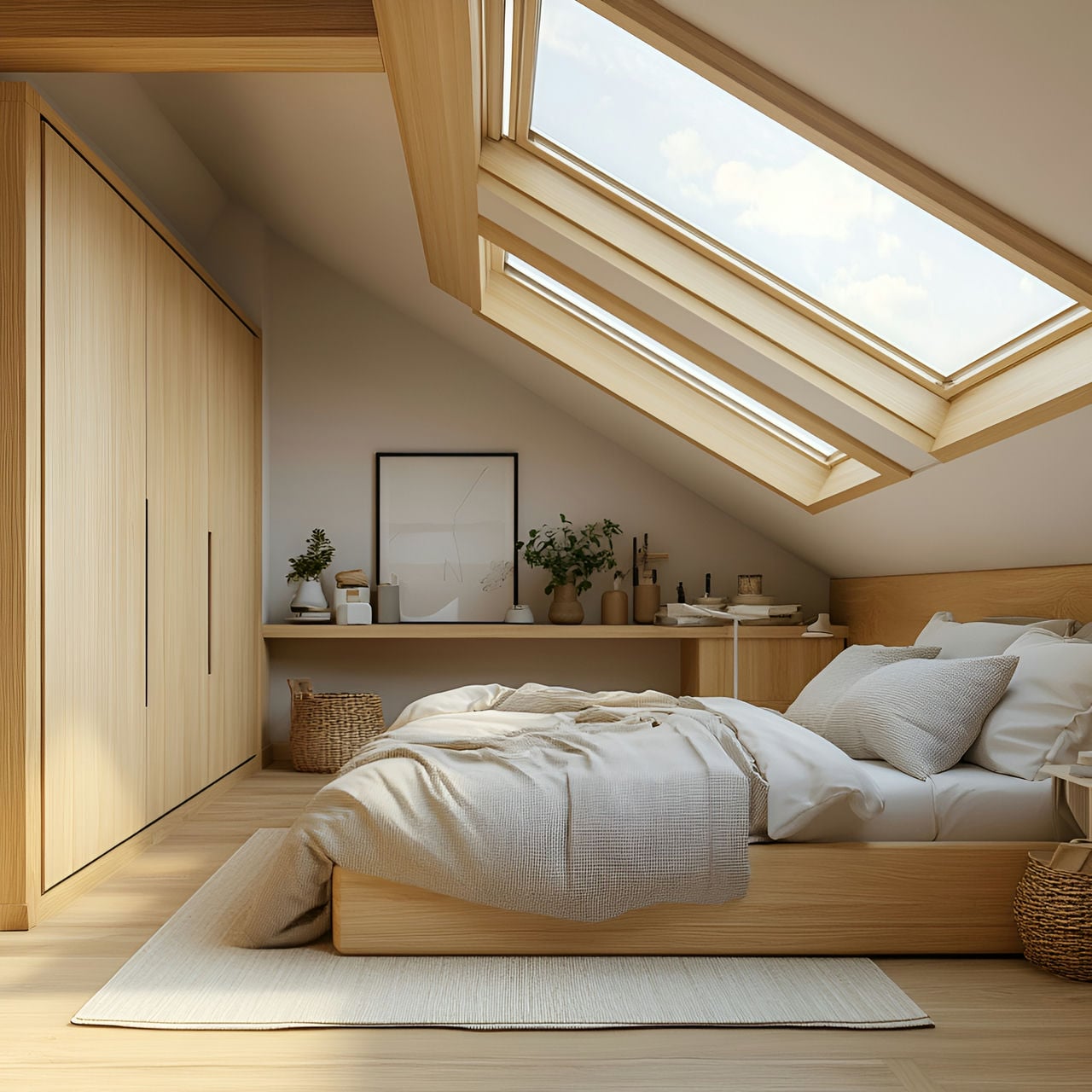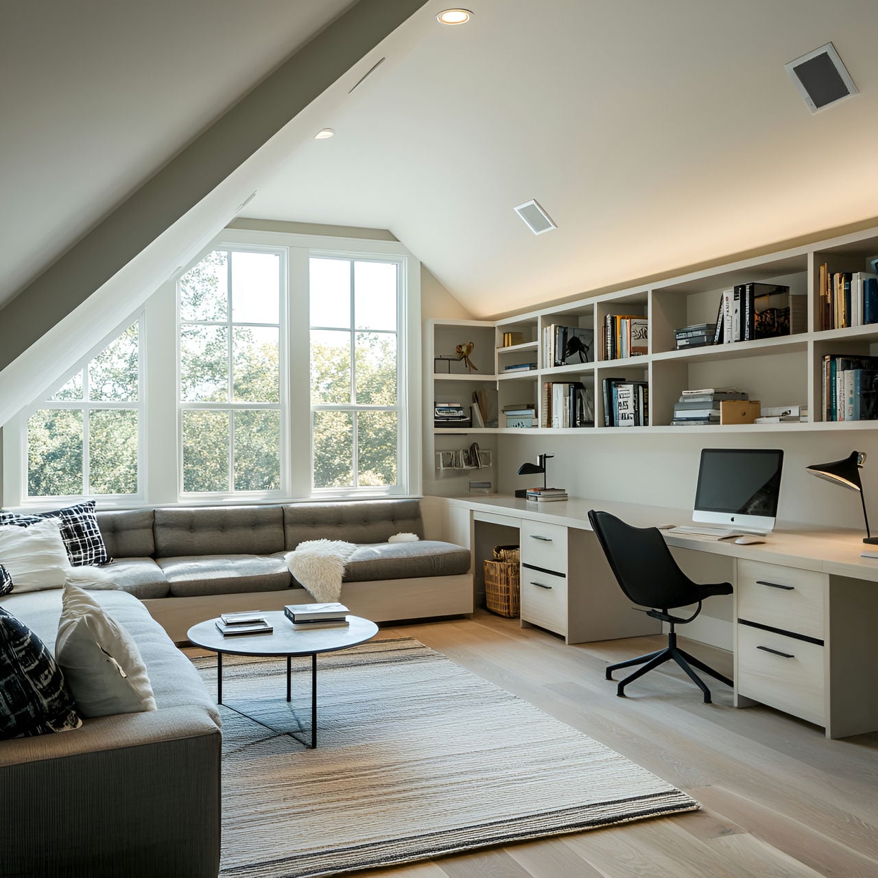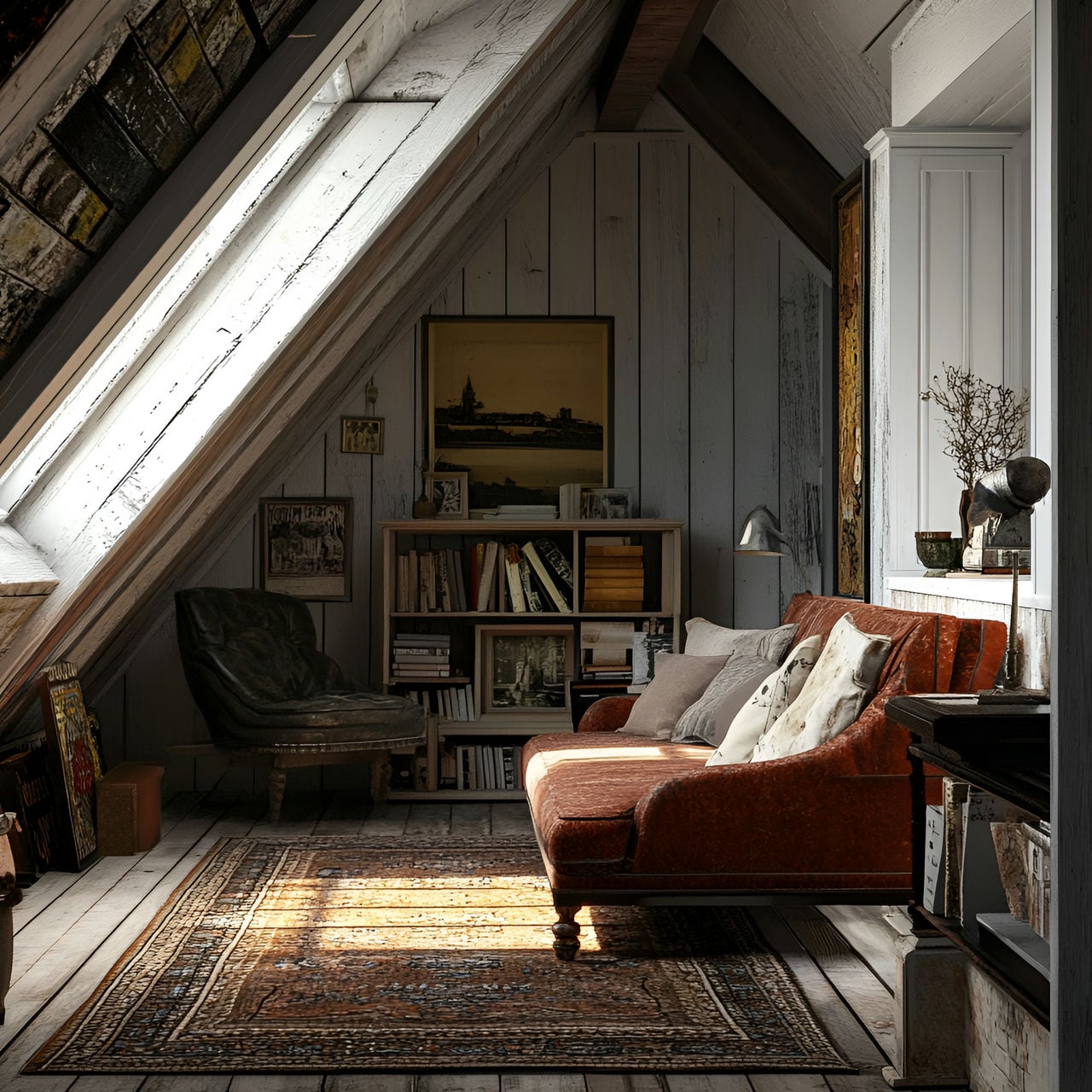 Los áticos varían en tamaño, funcionalidad y posibilidades de uso. Los áticos típicos suelen medir entre 100 pies cuadrados (9,3 metros cuadrados) y 160 pies cuadrados (14,9 metros cuadrados), con anchos y longitudes interiores variables. La altura del techo alcanza su punto máximo en la parte central, con medidas que oscilan entre 5 pies (1,5 metros) y 7 pies (2,1 metros). Por lo general, los áticos adoptan una forma rectangular para maximizar la superficie utilizable, con una planta más profunda que ancha. El mobiliario habitual en áticos incluye armarios de almacenamiento, camas tipo diván o futones, escritorios, estanterías, sillas de asiento y tocadores o mesas de arreglo personal. Los espacios de ático suelen pintarse en tonos como gris pizarra, beige cálido, azul cielo, blanco suave, azul marino profundo, rosa empolvado y verde salvia claro. La eficiencia energética en un ático se logra mediante un correcto sellado y aislamiento, una ventilación eficiente, tratamientos adecuados para ventanas y la incorporación de barreras radiantes. Entre los factores que influyen en la renovación de un ático se encuentran la integridad estructural, el aislamiento y la ventilación, los accesos y salidas, los requisitos de iluminación e instalaciones eléctricas, la optimización del espacio, la integración estética y el presupuesto disponible. Aunque no siempre es imprescindible, la participación de un arquitecto puede resultar muy beneficiosa en renovaciones de áticos complejas, ya que aporta experiencia en la evaluación estructural, el aprovechamiento del espacio, las soluciones de iluminación y ventilación, el aislamiento, la mejora estética y el cumplimiento de los códigos de edificación. La decisión de contratar a un arquitecto debe ajustarse a las necesidades del proyecto, teniendo en cuenta su complejidad y los resultados deseados. La redecoración de un ático suele requerir entre 4 y 8 semanas, dependiendo del alcance de la intervención. Durante este proceso, los propietarios suelen enfrentarse a limitaciones estructurales, retos relacionados con el aislamiento y la ventilación, restricciones de espacio, dificultades de acceso, limitaciones de iluminación, restricciones presupuestarias y el cumplimiento de la normativa vigente.