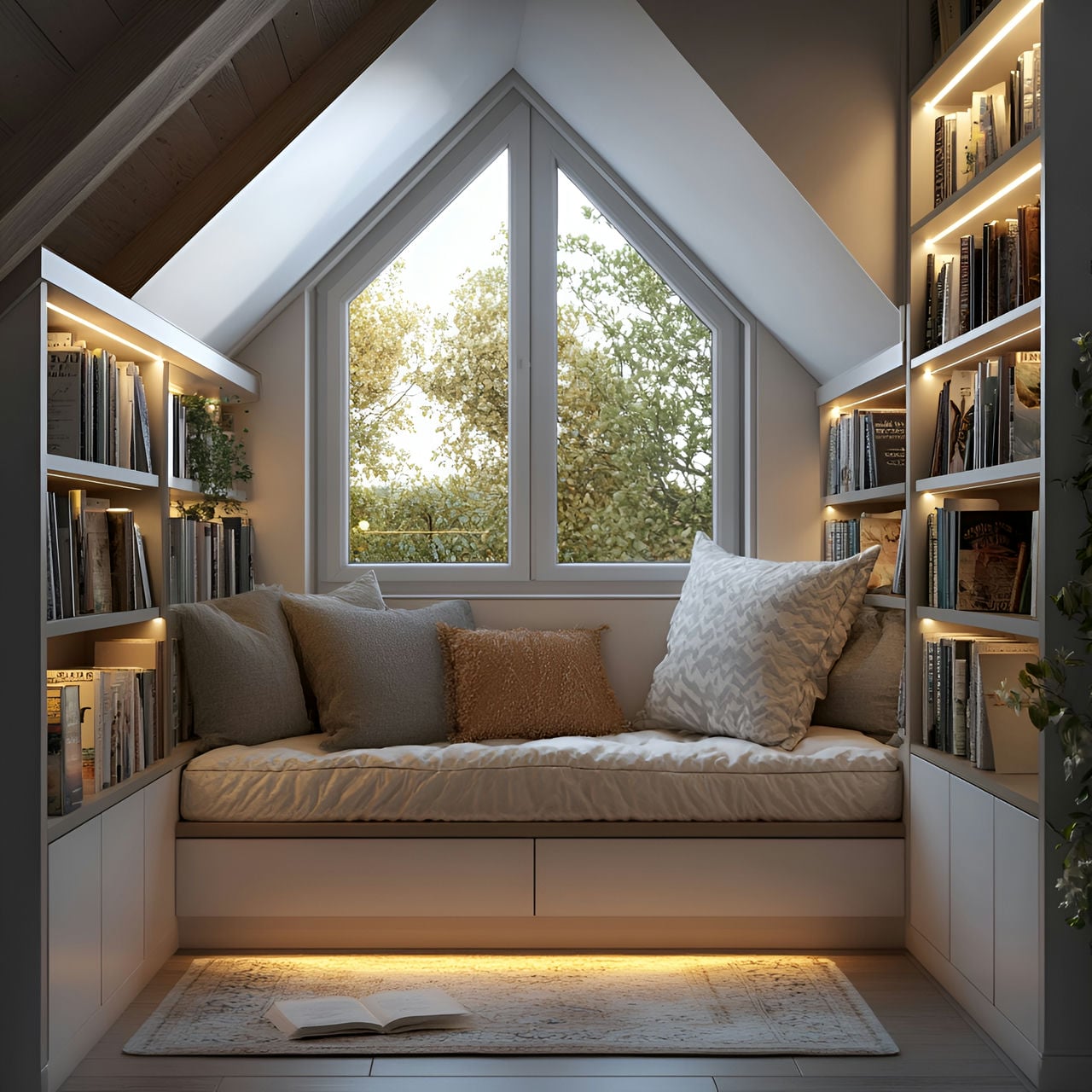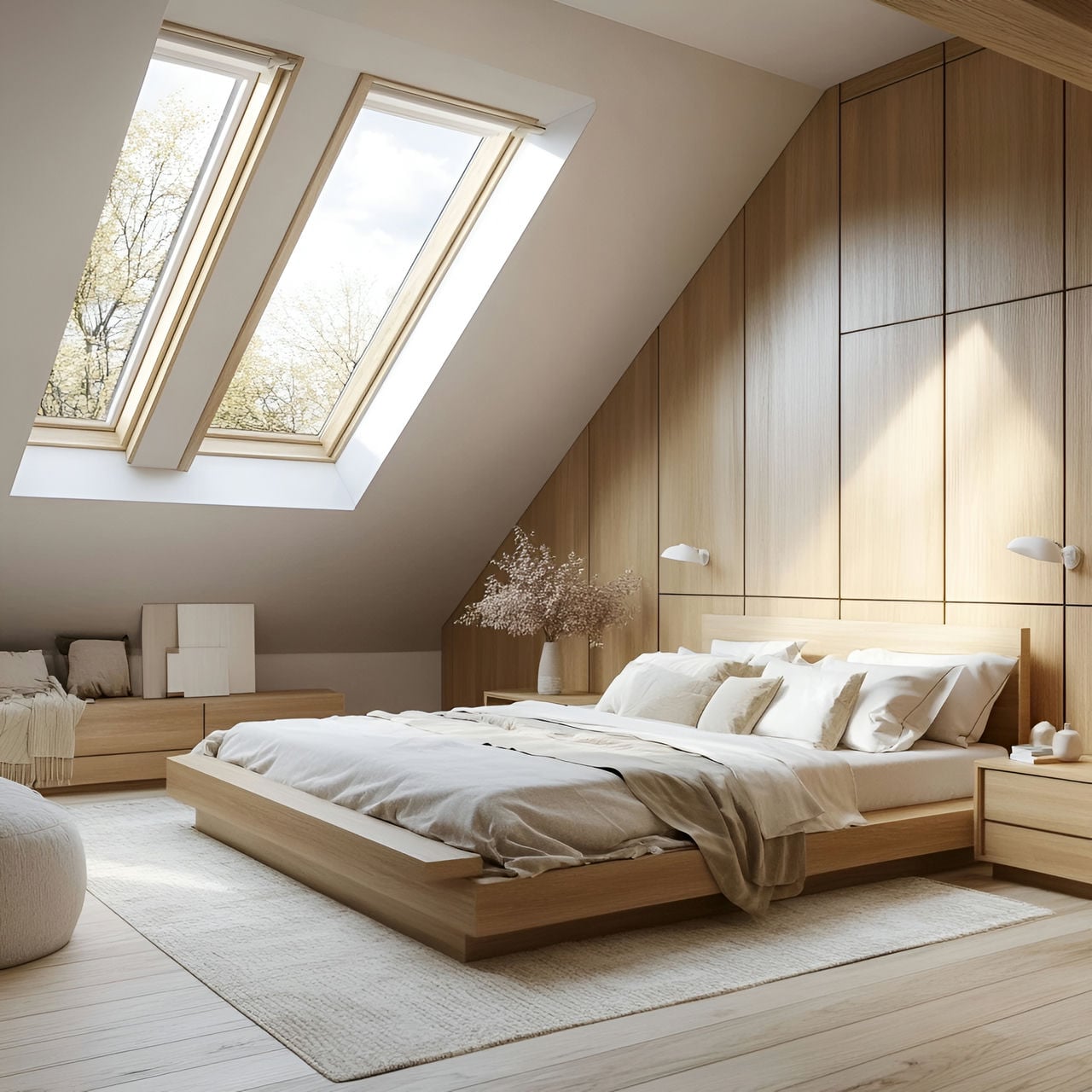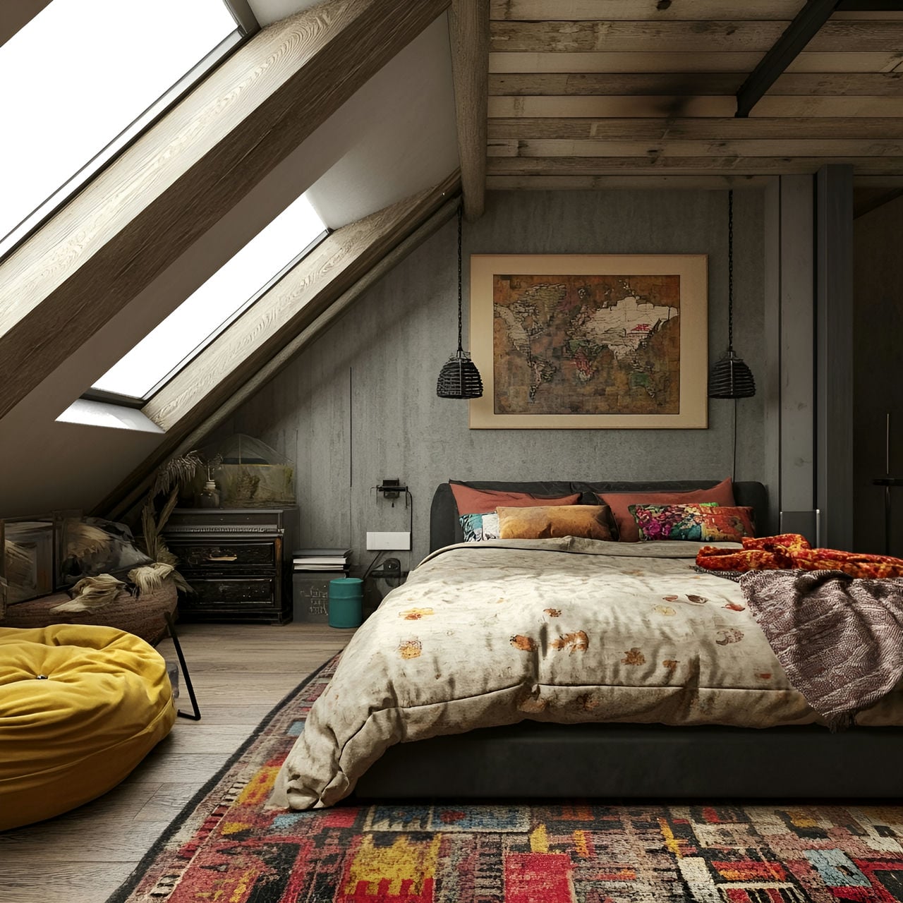 Los áticos varían en tamaño, funcionalidad y posibilidades de uso. Los áticos típicos suelen medir entre 100 pies cuadrados (9,3 metros cuadrados) y 160 pies cuadrados (14,9 metros cuadrados), con anchos y longitudes interiores variables. La altura del techo alcanza su punto máximo en la parte central, con medidas que oscilan entre 5 pies (1,5 metros) y 7 pies (2,1 metros). Por lo general, los áticos adoptan una forma rectangular para maximizar la superficie utilizable, con una planta más profunda que ancha. El mobiliario habitual en áticos incluye armarios de almacenamiento, camas tipo diván o futones, escritorios, estanterías, sillas de asiento y tocadores o mesas de arreglo personal. Los espacios de ático suelen pintarse en tonos como gris pizarra, beige cálido, azul cielo, blanco suave, azul marino profundo, rosa empolvado y verde salvia claro. La eficiencia energética en un ático se logra mediante un correcto sellado y aislamiento, una ventilación eficiente, tratamientos adecuados para ventanas y la incorporación de barreras radiantes. Entre los factores que influyen en la renovación de un ático se encuentran la integridad estructural, el aislamiento y la ventilación, los accesos y salidas, los requisitos de iluminación e instalaciones eléctricas, la optimización del espacio, la integración estética y el presupuesto disponible. Aunque no siempre es imprescindible, la participación de un arquitecto puede resultar muy beneficiosa en renovaciones de áticos complejas, ya que aporta experiencia en la evaluación estructural, el aprovechamiento del espacio, las soluciones de iluminación y ventilación, el aislamiento, la mejora estética y el cumplimiento de los códigos de edificación. La decisión de contratar a un arquitecto debe ajustarse a las necesidades del proyecto, teniendo en cuenta su complejidad y los resultados deseados. La redecoración de un ático suele requerir entre 4 y 8 semanas, dependiendo del alcance de la intervención. Durante este proceso, los propietarios suelen enfrentarse a limitaciones estructurales, retos relacionados con el aislamiento y la ventilación, restricciones de espacio, dificultades de acceso, limitaciones de iluminación, restricciones presupuestarias y el cumplimiento de la normativa vigente.