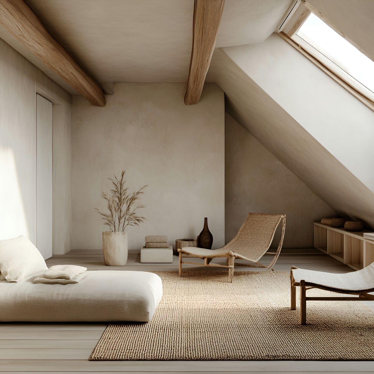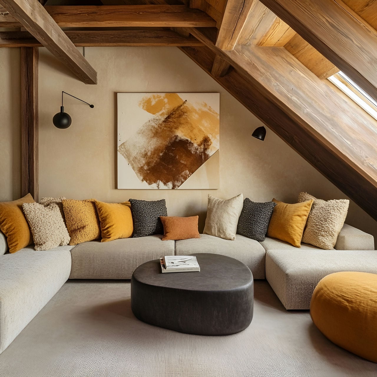 - Beige cálido: El beige cálido es una elección popular para áticos, ya que potencia la luz natural y hace que el espacio parezca más amplio y abierto. Funciona bien con estilos decorativos variados, desde rústicos hasta modernos, y combina especialmente bien con texturas naturales como la madera o la piedra.