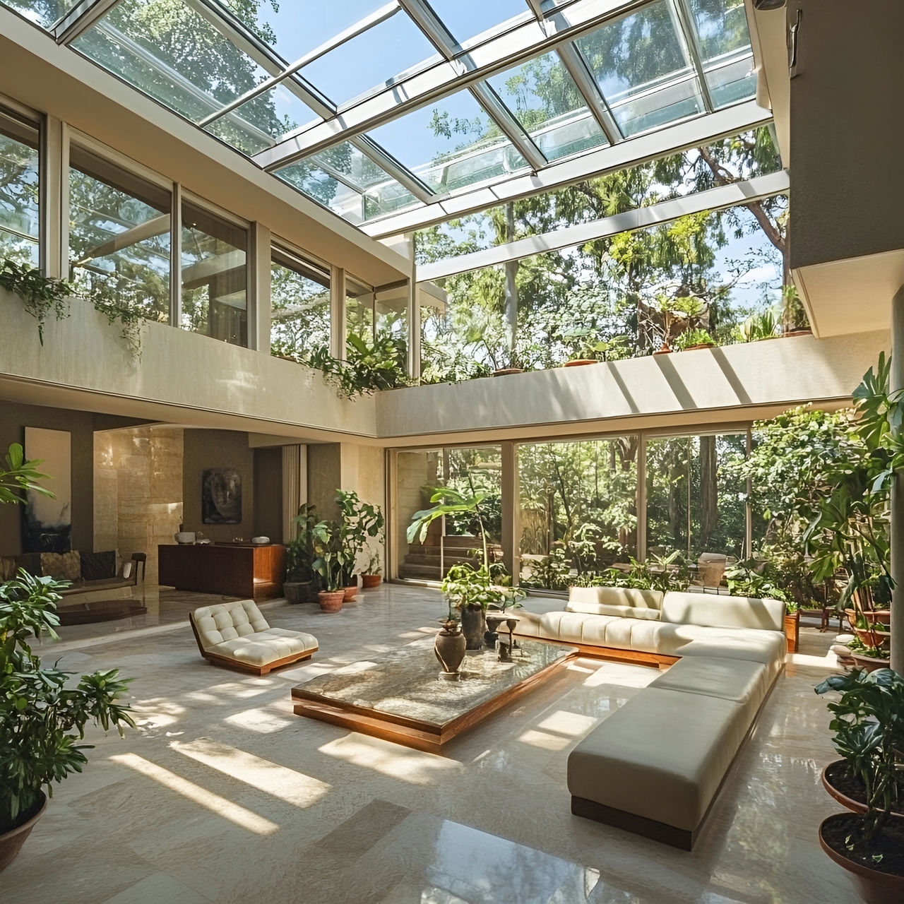 El propósito de un atrio es mejorar la iluminación natural, optimizar la ventilación, proporcionar un espacio común, añadir atractivo estético, ofrecer oportunidades para la jardinería interior e incrementar el valor de la propiedad. En primer lugar, actúa como una fuente significativa de luz natural. Su diseño incorpora grandes aberturas o un tragaluz que permite la entrada de luz solar, iluminando los espacios interiores y reduciendo la dependencia de la iluminación artificial. En segundo lugar, el atrio desempeña un papel crucial en la ventilación. Su arquitectura facilita la circulación del aire, ayudando a enfriar la casa y mejorando la calidad del aire, lo que es esencial para un entorno saludable. En tercer lugar, un atrio sirve como un espacio común que fomenta la interacción social. Tradicionalmente ubicado en el corazón del hogar, proporciona un área de reunión para familiares e invitados, promoviendo una experiencia de vida colaborativa. En cuarto lugar, el atractivo estético del atrio es un aspecto que no debe pasarse por alto. Su diseño amplio y abierto agrega un elemento arquitectónico único a la vivienda, haciéndola visualmente atractiva y, a menudo, convirtiéndose en un punto focal. Por último, los atrios pueden aumentar el valor de la propiedad. Un atrio bien diseñado es altamente deseable en el mercado inmobiliario, lo que hace que las casas con esta característica sean más atractivas para los compradores potenciales y, posiblemente, eleva su valor de mercado. Esto convierte a los atrios en una característica arquitectónica y en una inversión en la propiedad.