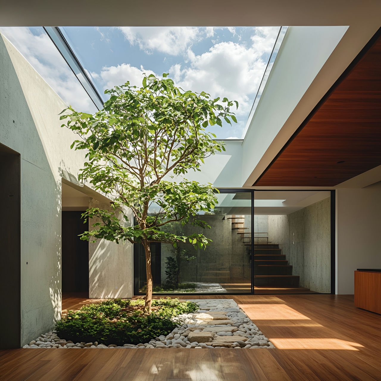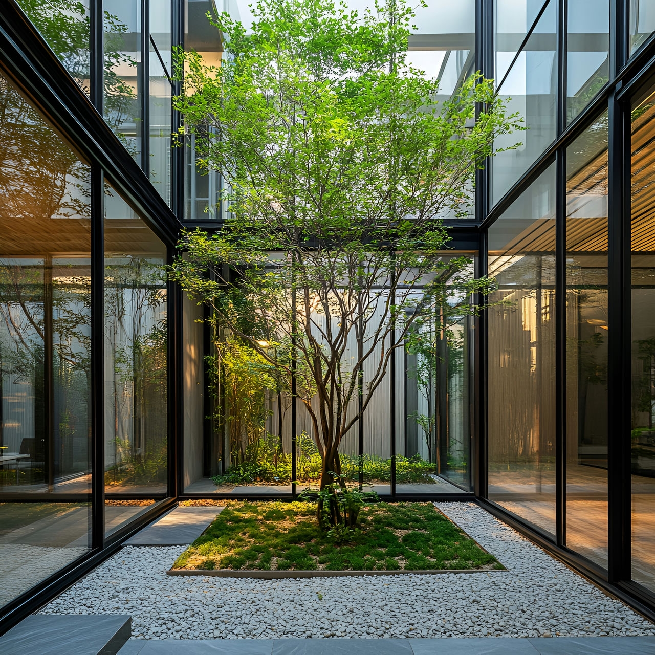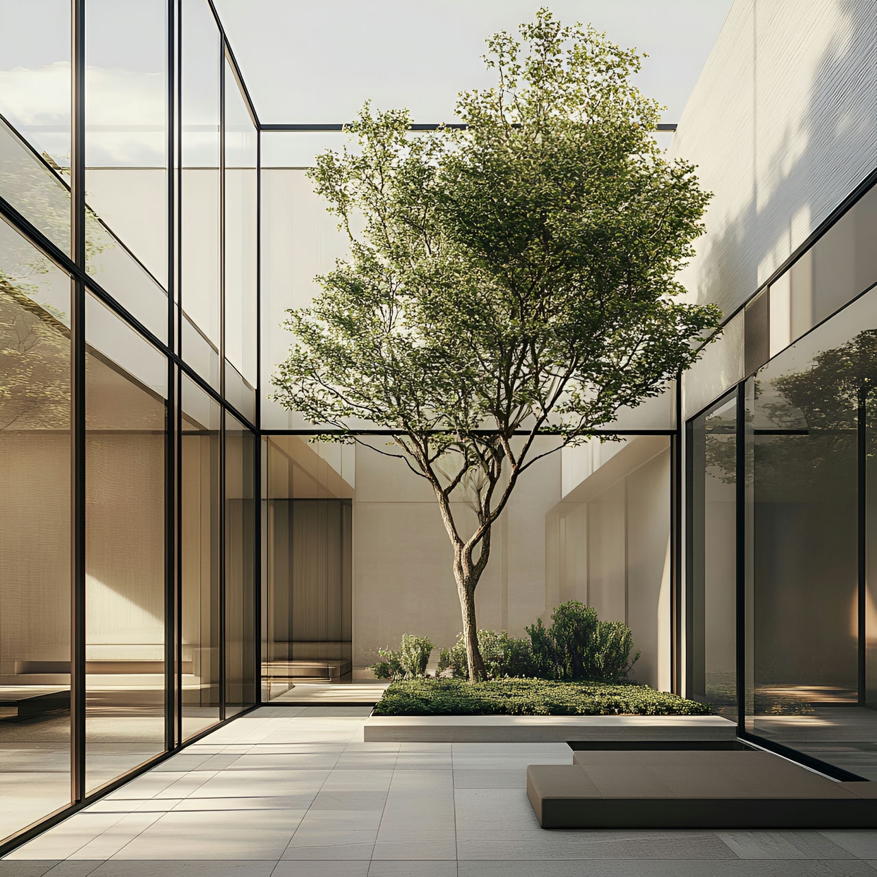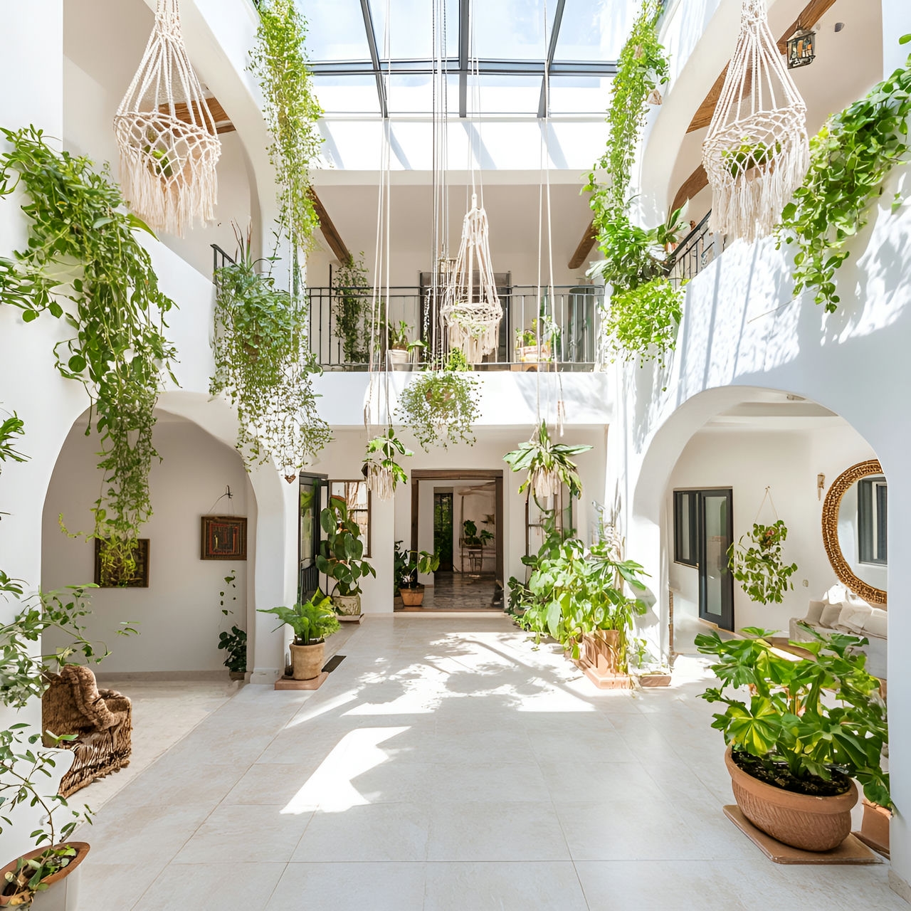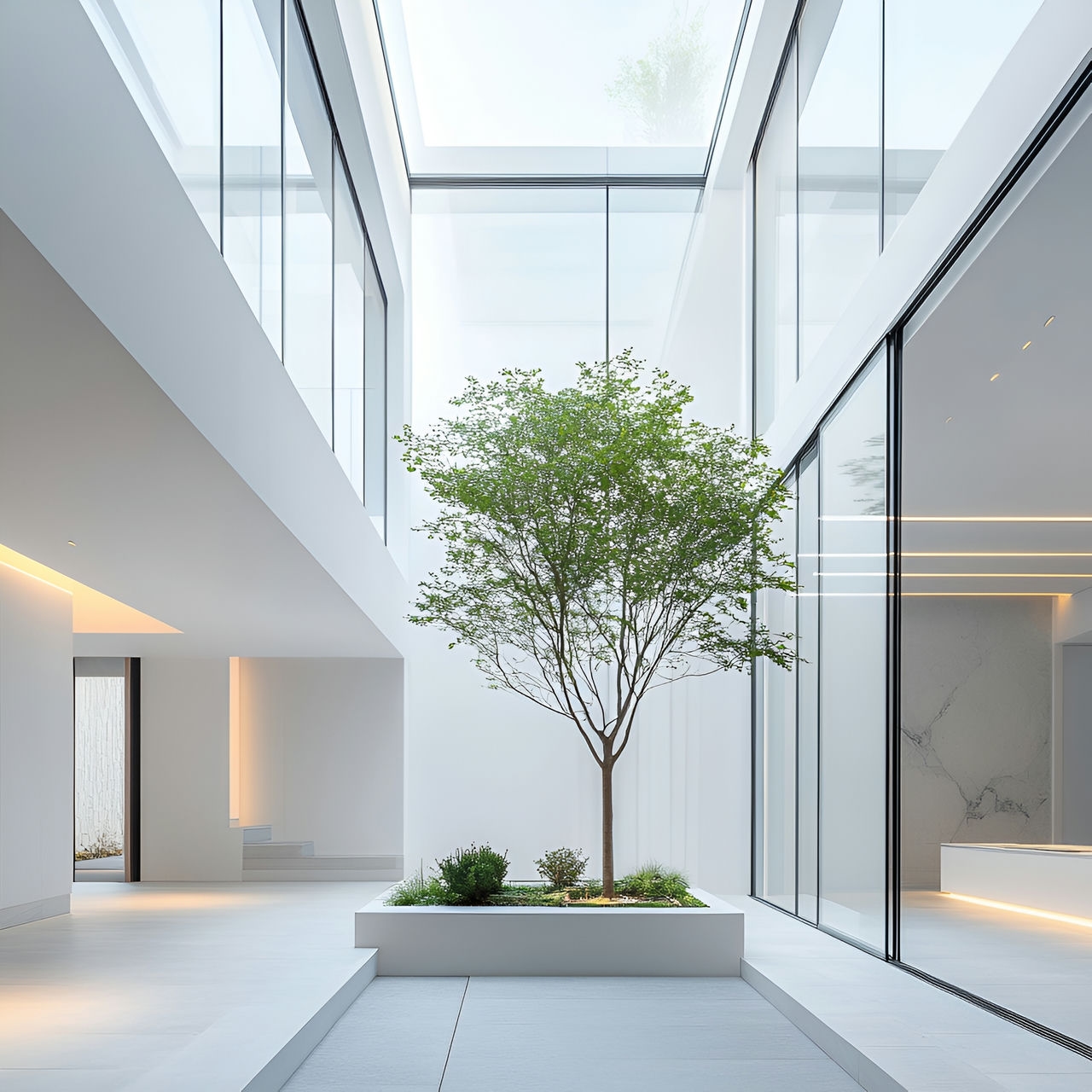 - Vegetación: Incluir plantas en un atrio aporta interés visual y conexión con la naturaleza. Se pueden considerar árboles grandes, jardines verticales en las paredes o jardines colgantes en el techo para mejorar la estética y calidad del aire.