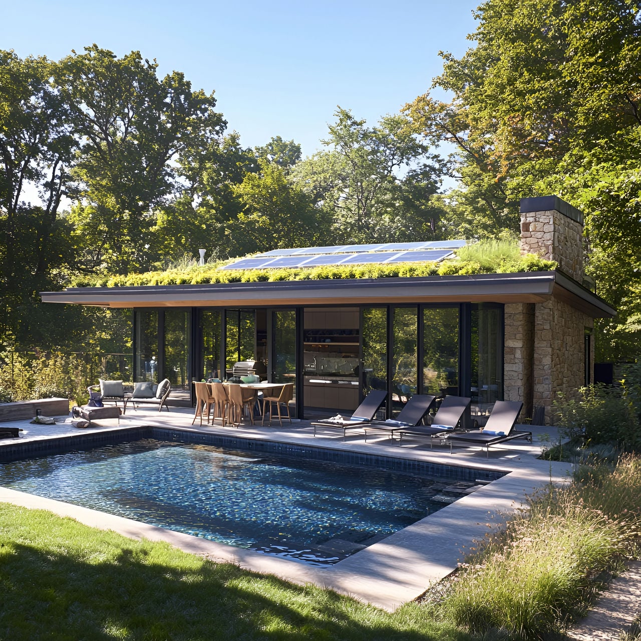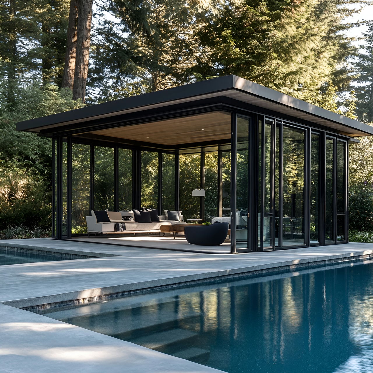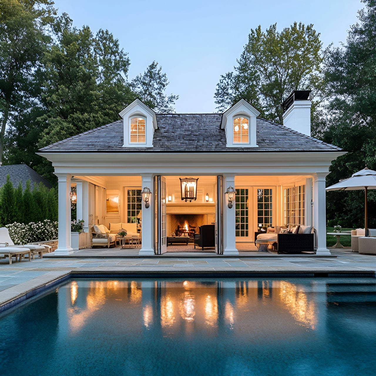 - Integración con el entorno: Diseña la casa de piscina teniendo en cuenta el paisaje, la piscina y la estética general de la propiedad, logrando una integración armónica con el exterior.