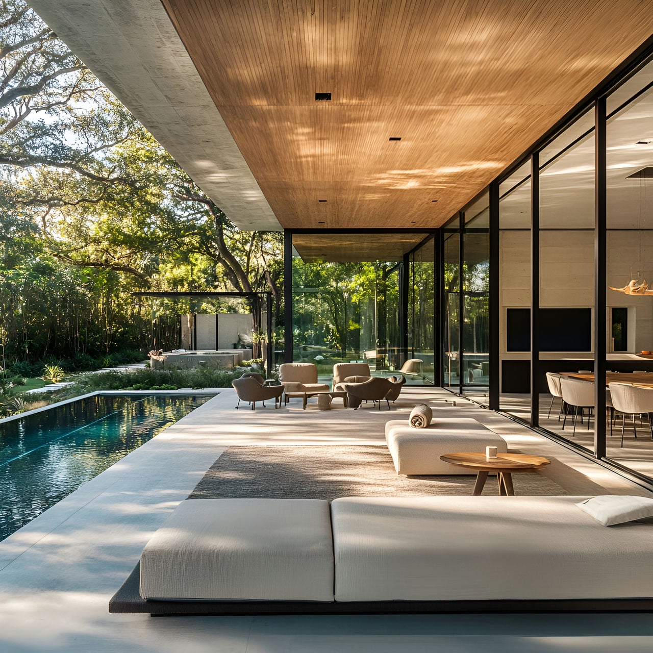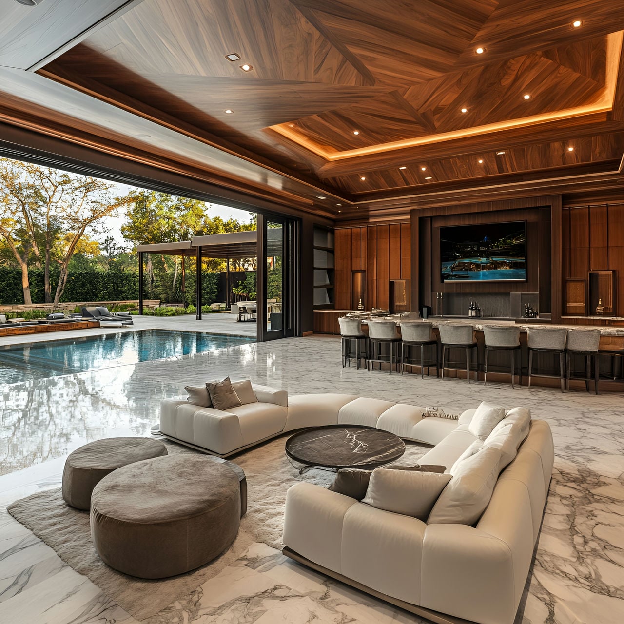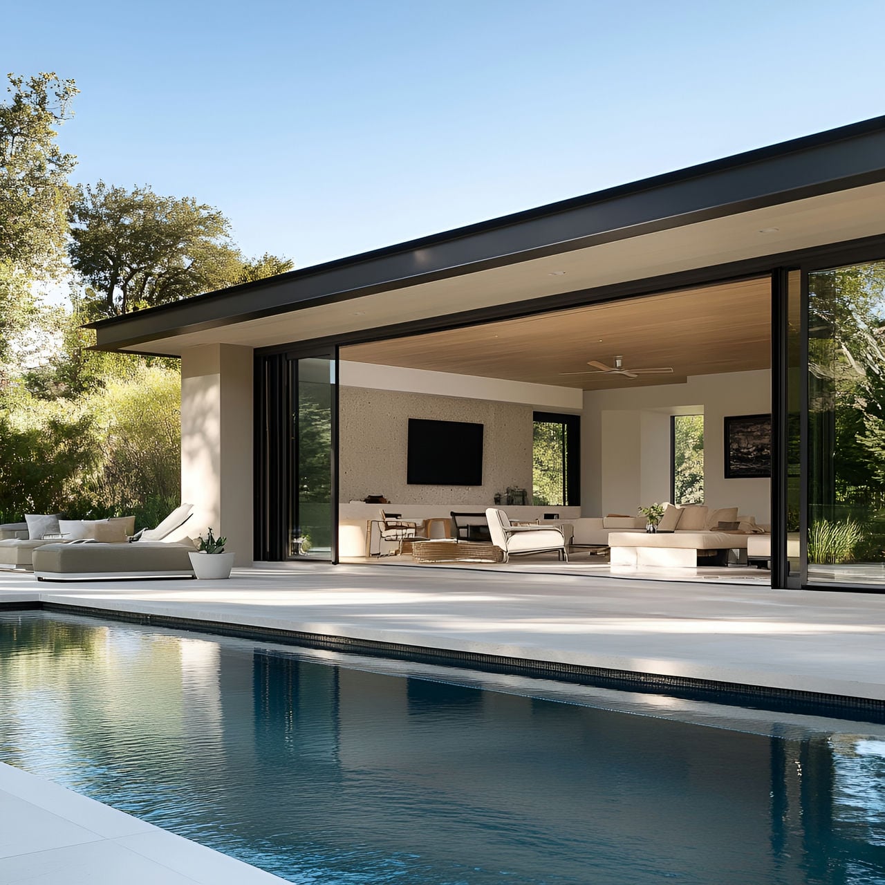 - Integración con el entorno: Diseña la casa de piscina teniendo en cuenta el paisaje, la piscina y la estética general de la propiedad, logrando una integración armónica con el exterior.