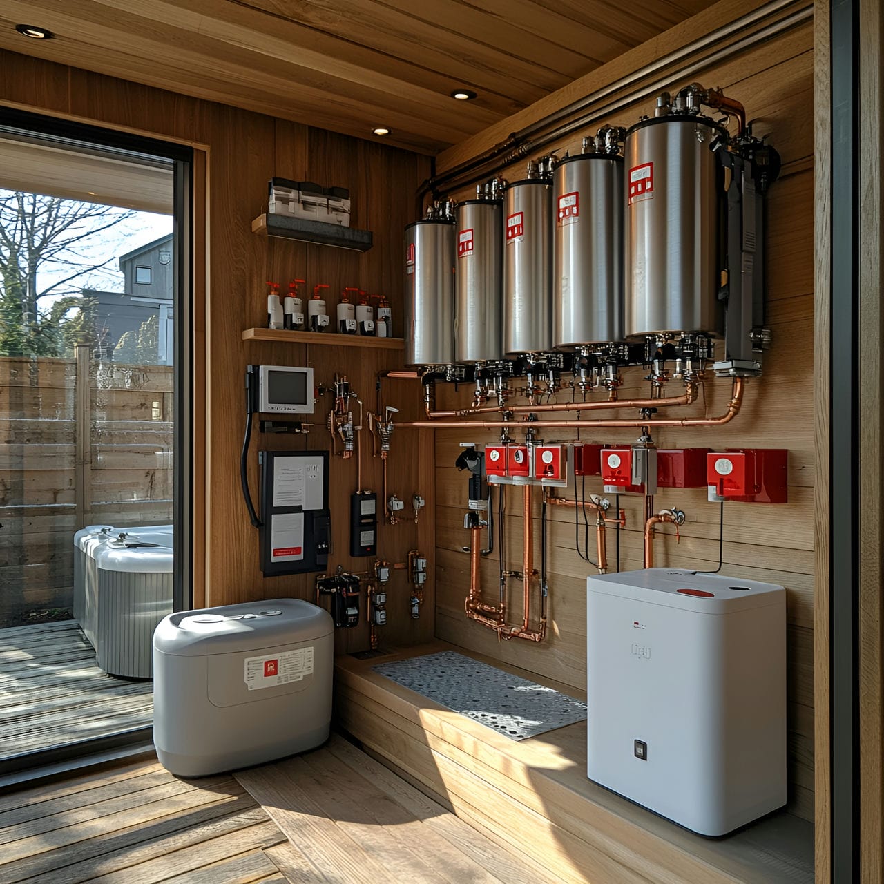 Las salas de calderas residenciales de gran tamaño superan generalmente los 160 pies cuadrados (15 metros cuadrados) y pueden alcanzar los 215 pies cuadrados (20 metros cuadrados) en viviendas de lujo de alto nivel. En estos casos, las alturas de techo aumentan hasta 10 pies (3 metros) para albergar equipos redundantes integrados, servidores de automatización doméstica que controlan los sistemas de toda la propiedad y sistemas avanzados de filtración de aire. Los técnicos requieren amplios espacios perimetrales para el mantenimiento de equipos de mayor tamaño y de calidad comercial.